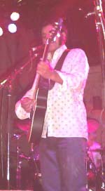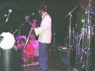 ist, plus tape recorder. Rhythms are largely eastern in influence, vocals are few and far between. The tape runs out signalling the end of the set. Cornershop, in common with the previous act are also playing a rare gig in these parts and it's immediately clear that a large part of the sold out audience have come to see them. The other rather obvious (some might say lazy) comparison is the Indian influences - Cornershop have come a long way from their Ford Cortina days. In fact Tjinder is the only member of the band left who, well, might as well say it, isn't white, though in fact he concentrates on guitar leaving the less rock'n'roll instruments such as sitar and tamboura to Ben and the others. The overall effect is a swirling rather trancey (ahem) vibe which gets the audience on their feet. The response to an extended Julander Shere is pretty much raptureous.