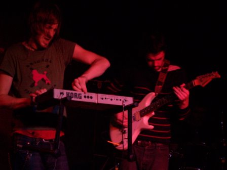 As it transpires I’m there too late to see G-plan, but I don’t realise this, at least not at first. L Casio, mooted by many ‘in the know’ as one of Glasgow’s hottest properties, could have been performing out-takes from G-plan’s debut album, at least the first couple of songs, which is powered by those post-rockin' beats that only Glasgow could give birth to. They diversify, however, with some action-packed fun with a Korg stage front, and some twin-drummer shenanigans. High points in a set which isn’t as monopaced as I originally feared, features some latin-tinged guest saxophone. Plus, creative use of castanets is thrown into the percussive mix on the closing number. In all, promising, if they can get past the hyperbole (in fairness, it may only be myself who has heard this!)