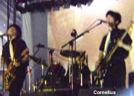 X-tigers are first, for us, in the Tbreak tent. I'm only really familiar with their version of 'Little Donkey', the only other thing known about them is they're all really tall. The sound in the tent has vastly improved- clear as a bell, and the Tigers have a sharp clean sound, some neat tunes ("Cassette" (?) being of particular note) and great harmonies. By the end of the set one of our questions has been answered - already we've seen something to rank with Saturday's highlight of Idlewild. The only problem with that is that the rest of the day is in danger of being an anti-climax. And our worries continue at the NME stage where Biffy Clyro start off sounding a bit ropey. Can it be coincidence, then that when we move forward towards the stage, the band miraculously sound tight, in-tune and like the potential world-beaters that they are? Our move coincides with a rasping version of '27' but the rest of the set rumbles along and kicks the proverbial crap out of any of the nu-metal acts that have graced the stage so far. Gigs are always rather down to what you're expecting, though, and pulling up a grassy knoll, we get out the checkered tablecloth and hope that our sandwiches are unspoiled by the Mull Historical Society. And, you know, having expected the worst, they're not at all bad. The vocals, which gnawed at the ears of your reviewer at Glasgow Green, sound impassioned and more importantly, tuneful, with 'Xanadu', with its 70's feel as well as title, providing a high-point for the set. And in a pattern which emerges through the day, 'Barcode Bypass' is actually quite punk rock in delivery. It's also noticeable that their sound on the main stage is the cleanest yet. Though I suspect the wind had dropped. rather than any mixing desk wizardry. (However, my lunching companion , having expected bright catchy pop music, was somewhat disappointed by the dullness of the set. Can't please 'em all, eh?). |