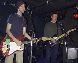 And so to Josephine. It appears for a second that they've taken up The Gents' old suits, throwing off the wooly pullovers mentioned in previous dispatches. They've also thrown away the rule book and started again, as previously-reported similarities to Cast or the Beatles have been expunged, and replaced with a new wave throwback feel - all skinny ties and ill-fitting jackets. Better still, they sound like they look - the guitar snarls like the Gang of 4 when plucked or the Wedding Present or Smiths (strummed). The singer stalks the stage like a demented Mark E Smith, though his vocals come across more like those of Stiff Little Fingers' Jake Burns. The female bassist-flautist lends backing vocals for those BIG choruses and the whole thing is, well, staggeringly exciting. The question in the audience at the end is if they've just witnessed The Next Big Thing. Believe the hype. |