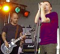 pure and simple. So the Racing Club started off with something of a declaration of intent as the band emerged from behind a squealing wall of feedback. 4 microphones, one for each member, suggested an emphasis on choruses, and one suspects that they don't share drums with the other bands on the bill simply because their kit gets the daylights leathered out of it. And what we got was indeed very old school British punk: a pogoing singer, melodies remeniscent of the Clash; indeed the only concession to American stylings were the false endings which owed a debt to the likes of Jawbreaker. But mostly it was nods to SLF or the Partisans, despite the fact that they're probably too young to recall those halcyon days of music in this country. The band claimed to have written new songs but apart from Good Life the set mainly comprised tracks from their album. Indeed they closed with Big Day Out, their debut single from 5 years ago, which dated them more than their influences could, and in its mix of raw energy and sheer excitement probably summed them up. Better catch them before they get old, or fade away. |
